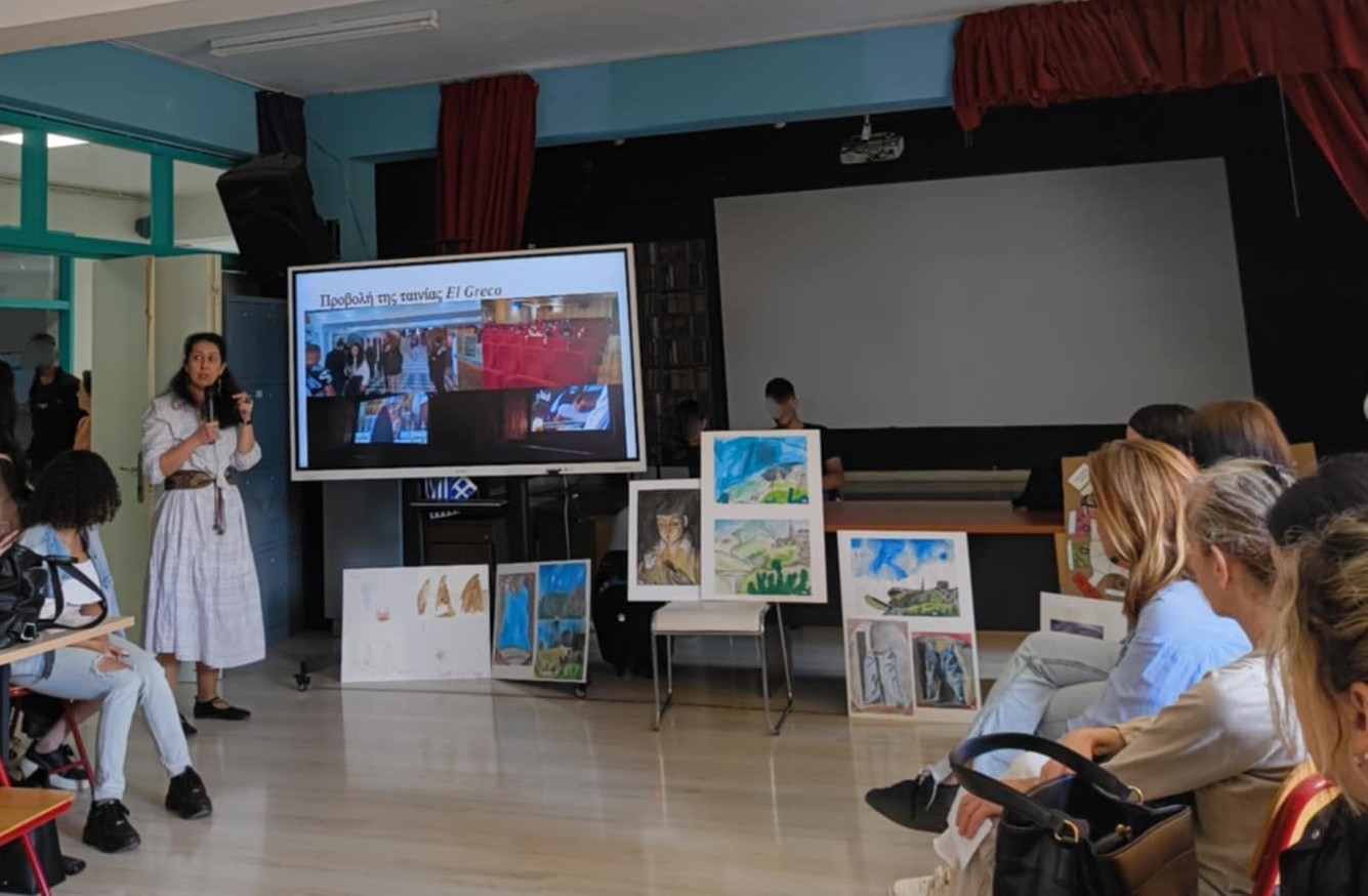 παρουσίασε στο αμφιθέατρο του σχολείου τις δράσεις του προγράμματος, που περιλάμβαναν εκπαιδευτικές επισκέψεις στο Ιστορικό Μουσείο Κρήτης και στο Μουσείο Αγίας Αικατερίνης, καθώς και την παρακολούθηση της ταινίας «El Greco» στον κινηματογράφο «Βιτσέντζος Κορνάρος».