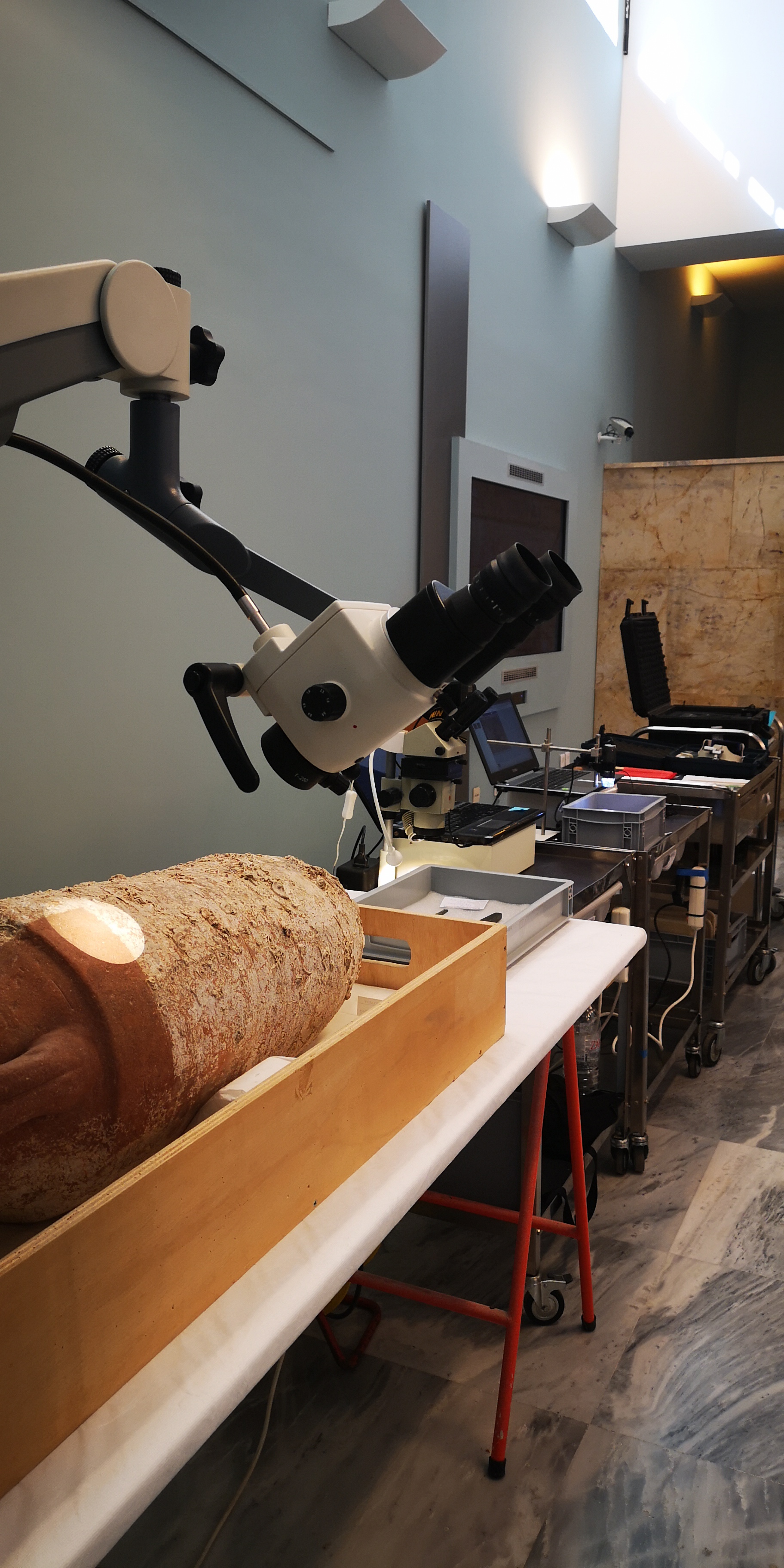 Το εργαστήριο περιελάμβανε καταρχήν μια εισαγωγή στην επιστήμη της Συντήρησης, με την προβολή ενημερωτικού υλικού, επίδειξη χρήσης επιστημονικών οργάνων και εργαλείων καθώς και παρατήρηση αυθεντικών αρχαίων αντικειμένων.