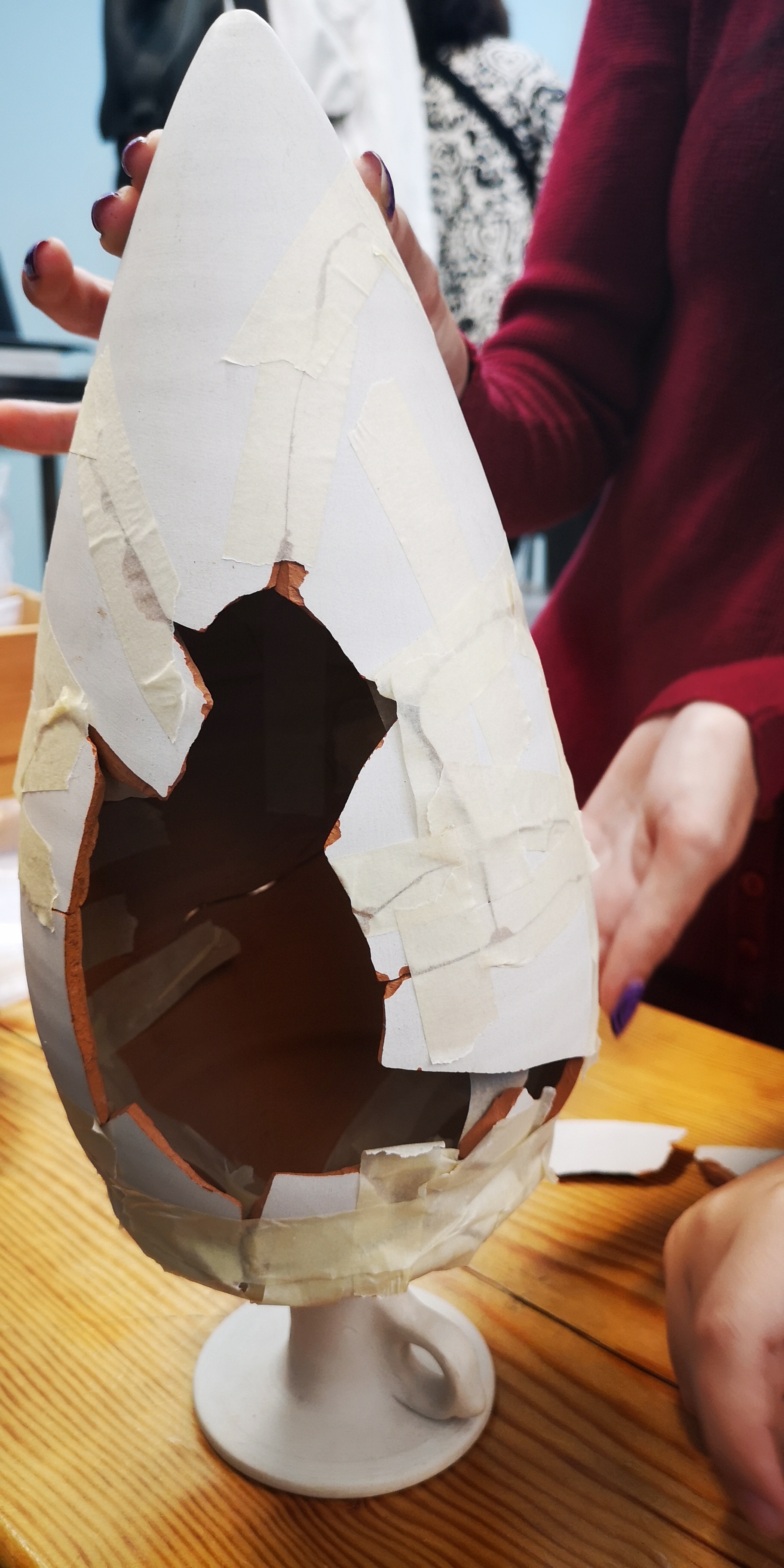 Κατόπιν ενα σύντομο εκπαιδευτικό πρόγραμμα, όπου οι μαθητές κλήθηκαν να παίξουν τον ρόλο του Συντηρητή Αρχαιοτήτων και να ανακαλύψουν την ομορφιά της ανασύνθεσης ενός κεραμικού αντικειμένου (αντίγραφου),οπου οι μαθητές μας το δέχθηκαν με μεγάλη χαρά και σε σύντομο χρονικό διάστημα κατάφεραν να ανασυνθέσουν απο τα σπαράγματά του, ενα αντίγραφο κεραμικό αντικείμενο.